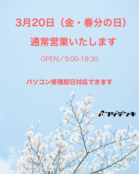 3月20日(金・春分の日)は通常営業いたしますNew!!