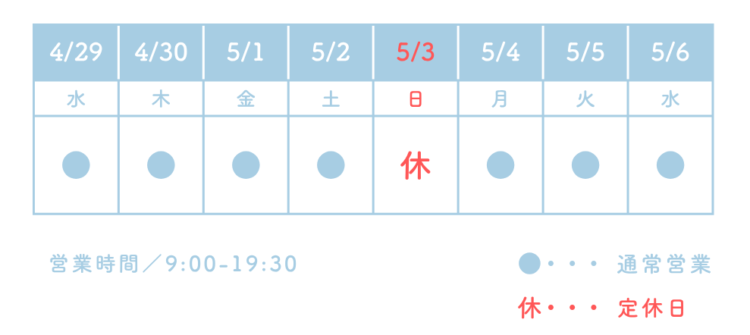 【4月の営業案内】ゴールデンウィークも通常営業いたします