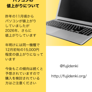 フジデンキのパソコン快適化キャンペーンは、どこで買ったパソコンでも対応いたしますので、お気軽にご相談ください。