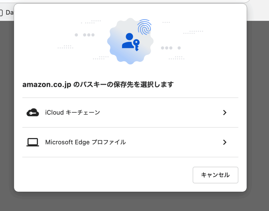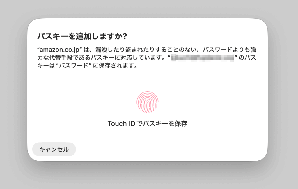 Amazonのログイン時にもパスキーの設定が表示される 設定しない場合はキャンセルで
