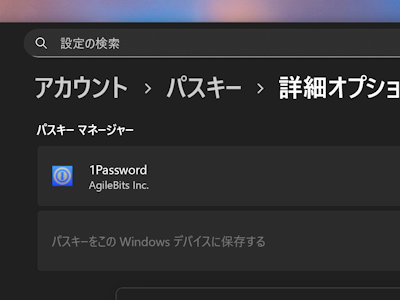 パスワード管理サービス「1Password」を運営する加AgileBitsは11月11日(現地時間)、「1Password for Windows 8.11.18」を公開した。本バージョンでは、「1Password」をOSのパスキー同期プロバイダーとして登録できるようになった。