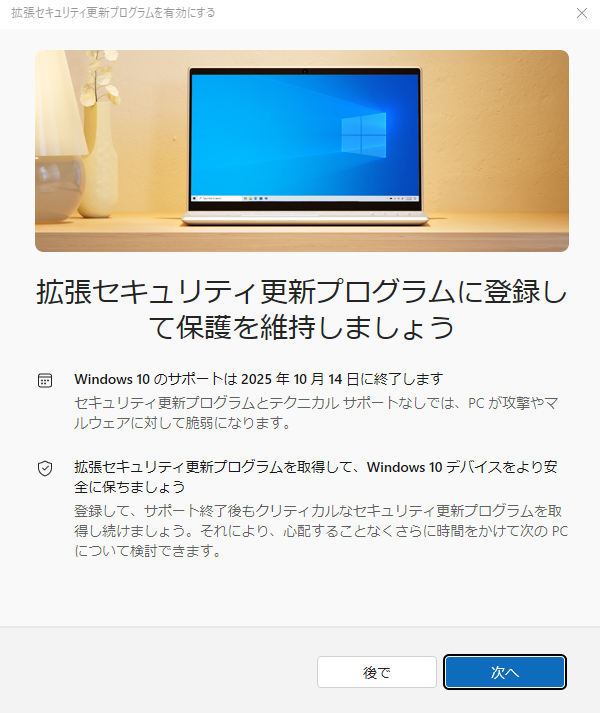 マイクロソフトは一定の条件を満たしたWindows 10パソコンに対して、拡張セキュリティ更新プログラム(ESU)を提供しています。