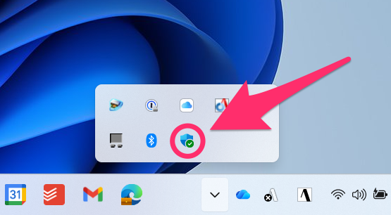 Windowsのタスクバーの通知領域にあるWindowsセキュリティを開きます。