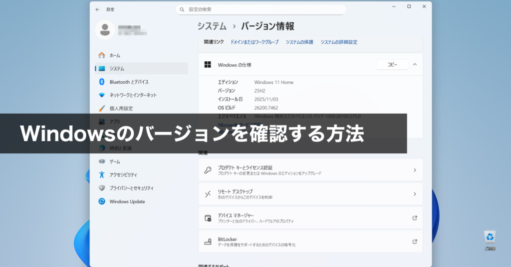パソコンサポート2025年12月31日Windowsのバージョンを確認する方法