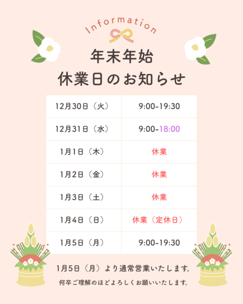 【6月の営業案内】定休日は日曜日、営業時間は9:00-19:30