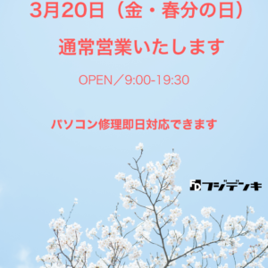 連日、パソコン修理のご依頼、お問い合せをいただいておりますが、年末年始は取引先が休みになるなどで、部品の入手ができないことがあります。 改めて年内の営業案内と修理対応についてご案内いたします。 […]